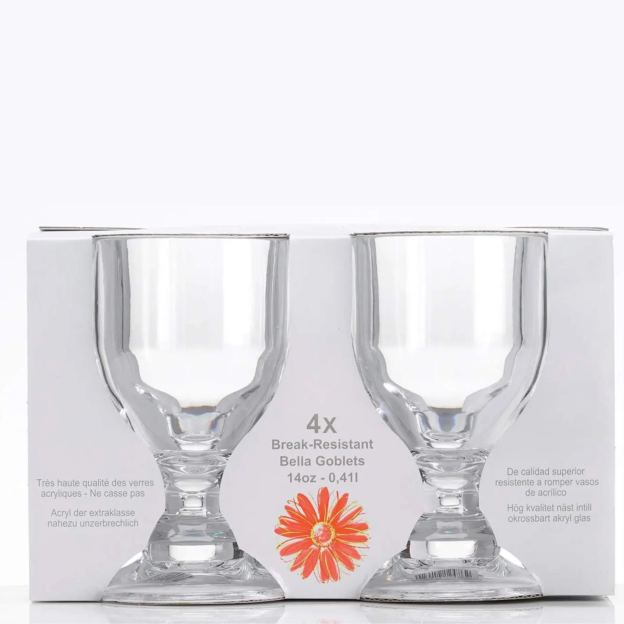 Sip in style with these Bella Goblets, a durable set of 4, made from break-resistant acrylic.
