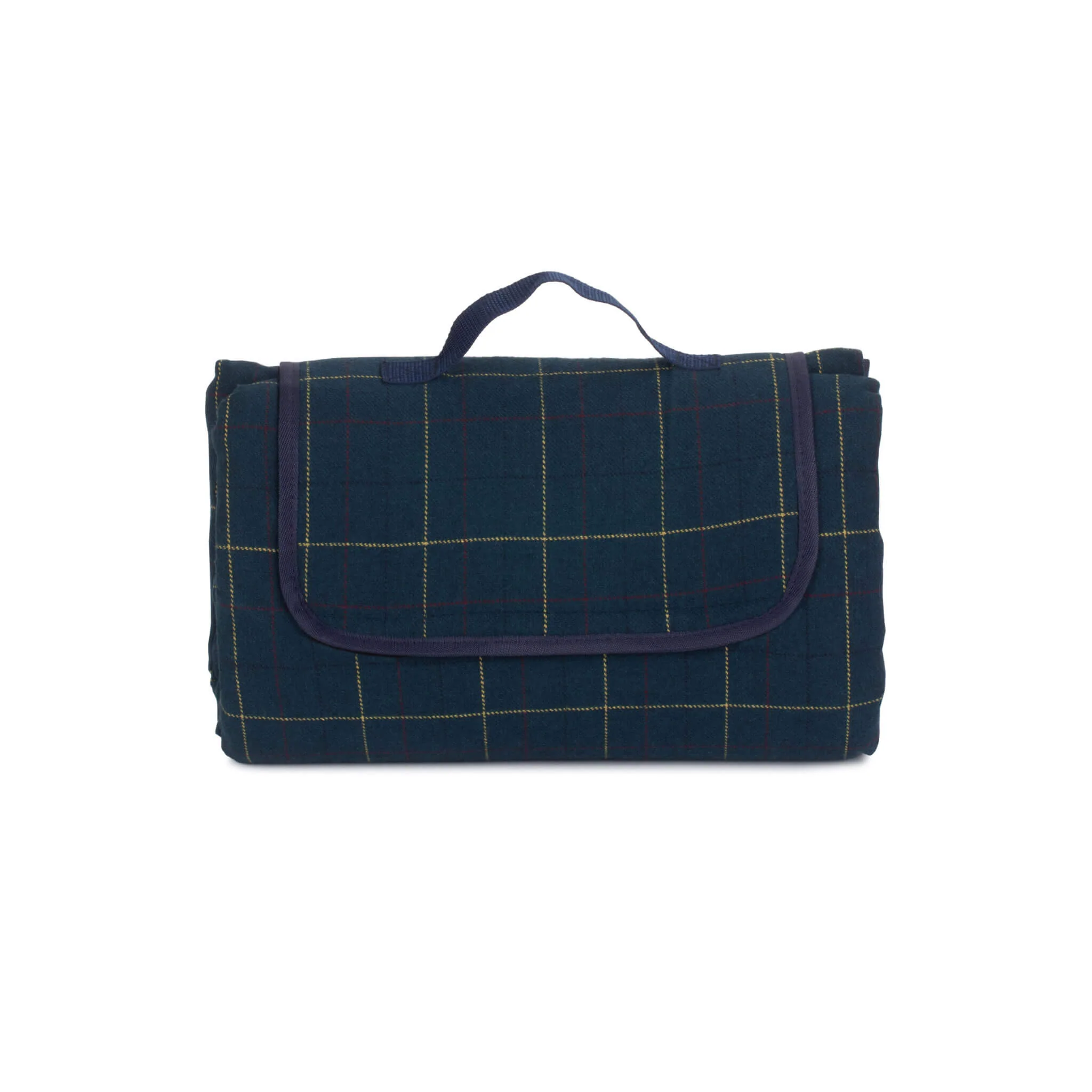 Add a touch of classic charm to your outdoor adventures with this beautifully designed dark blue tweed picnic blanket. Featuring a subtle red, yellow, and green check pattern, it’s the perfect companion for picnics, festivals, beach days, and countryside escapes—whatever the season.