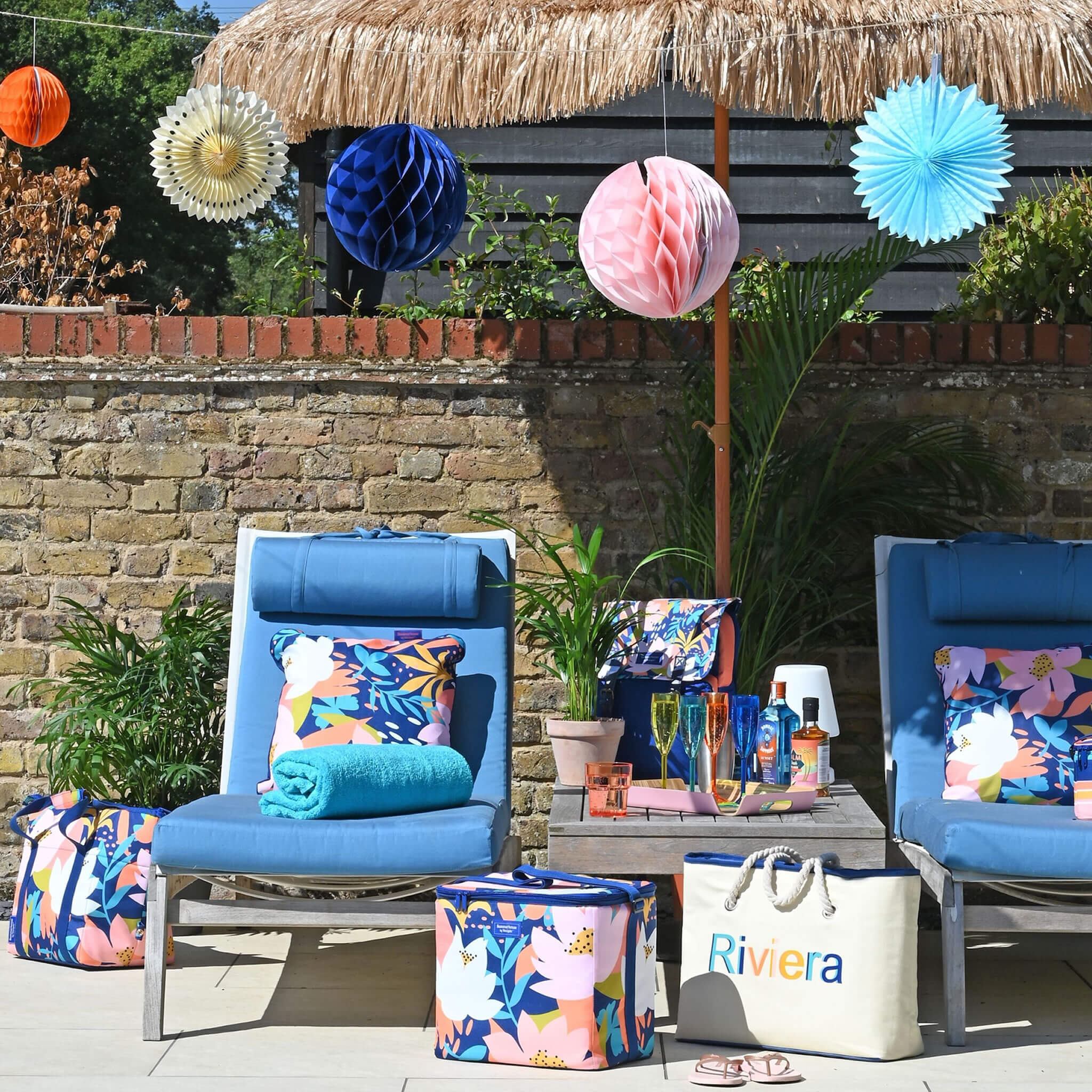 Inspired by the aquamarine Mediterranean Sea and the exotic foliage seen in Provence, this Riviera picnic blanket adds a bright pop of colour to your picnic.