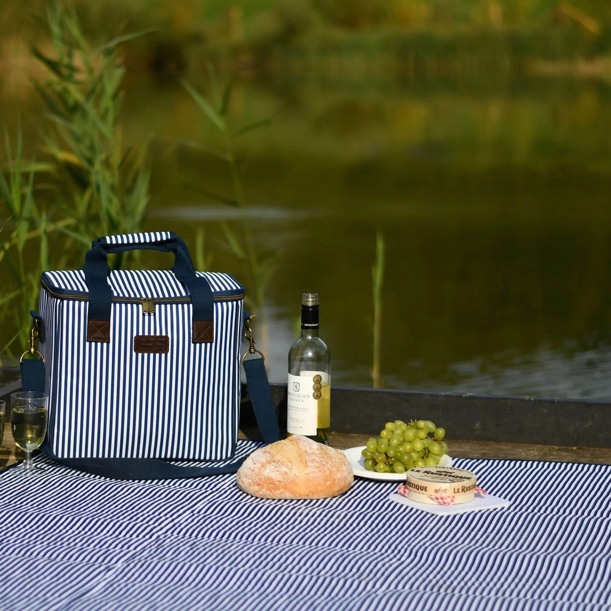With classic clean fresh lines of navy and white stripes creating the perfect look for that chill-out picnic, this picnic rug is great for summer days lounging at the park, picnics, festivals, camping, garden parties, barbecues or at the beach.